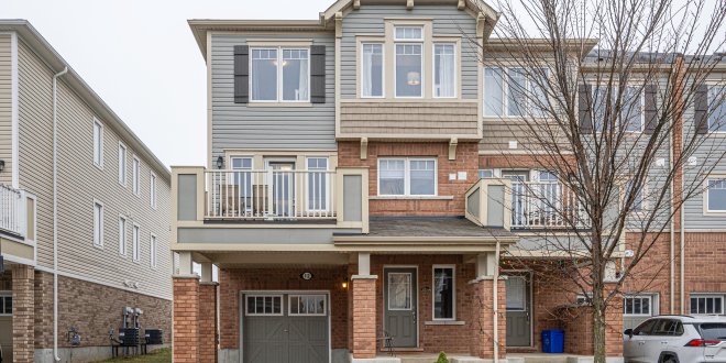 FREEHOLD END UNIT TOWNHOUSE. You won’t want to miss this immaculate move-in-ready townhouse in Kitchener’s Huron Park/Wildflower neighbourhood. Approaching the home you will appreciate the curb appeal and welcoming front porch. Upon entering the home you will find a large entranceway/hallway with a separate entrance to the large single car garage. Moving upstairs you will love the open concept main floor featuring an open concept kitchen with a large island, dining area, two piece bathroom and living room with a walkout to the second floor balcony. Plenty of natural light! Moving up to the third level we have the master bedroom with ensuite bathroom, two bright and spacious bedrooms, a four piece bathroom and upstairs laundry.